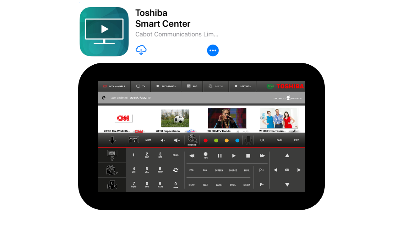 Smart Remote and Smart Centre apps available for Apple and Android devices - search "Toshiba Smart Centre"